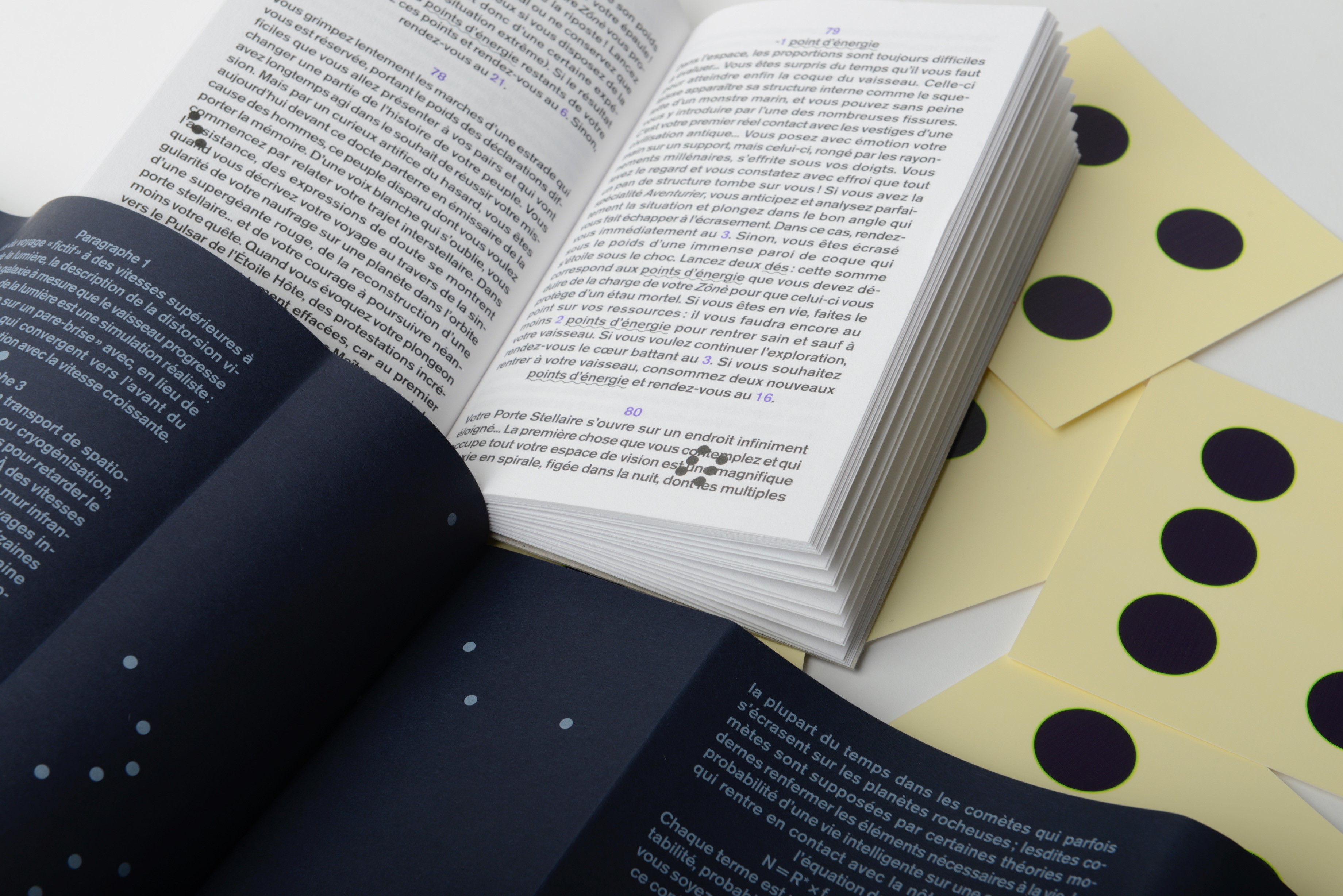 Si l'écriture du livre s'attache à l'emploi des canons historiques du genre des années 80, il propose dans sa forme imprimée une expérience de lecture indexée unique. Mis en forme par Fanette Mellier, ce livre de 104 pages aux occurrences multiples est accompagné d'un jeu de 6 cartes, faisant écho au travail des lunes, et sa jaquette constitue une véritable « Encyclopédie des étoiles » explicitant paragraphe par paragraphe les éléments scientifiques factuels sur lesquels s'appuie notre fiction interactive.