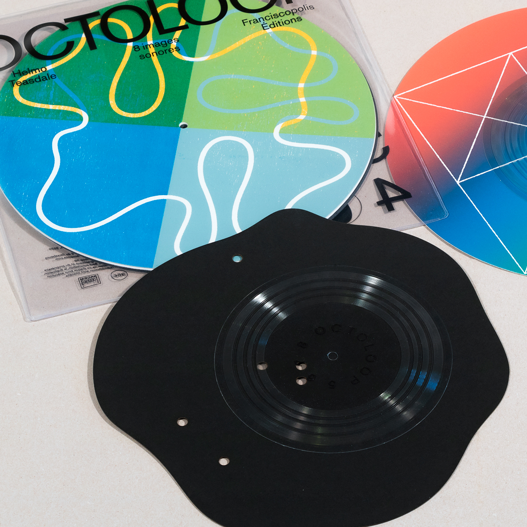 8 images conçues par Helmo (Thomas Couderc et Clément Vauchez). 8 créations sonores par Teasdale (Vincent Vauchez). Octoloop est un objet composite présentant 8 disques visuels imprimés sur carton (au format 33 tours, soit 30 cm de diamètre) et 2 disques vinyles audio souples et transparents, gravés sur 1 face (au format 45 tours, soit 18 cm de diamètre). L'ensemble est rassemblé dans une pochette plastique sérigraphiée.